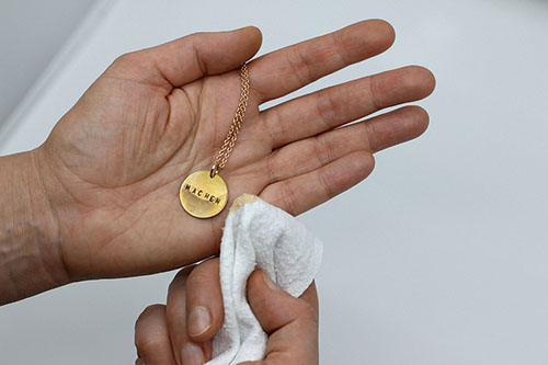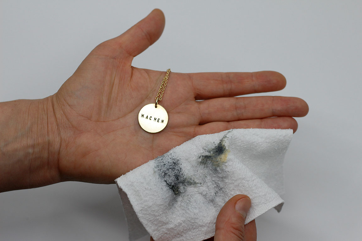 Viele Menschen mögen die charakteristische Patina, die ein Schmuckstück über die Zeit bildet. Andere hingegen gefällt es besser, wenn ihr Schmuckstück hell und glänzend scheint. Wenn dir die natürliche Patina nicht gefällt, kannst du dein Schmuckstück mit etwas Messingpoliermittel (z.B. aus dem Drogeriemarkt) wieder aufhellen.