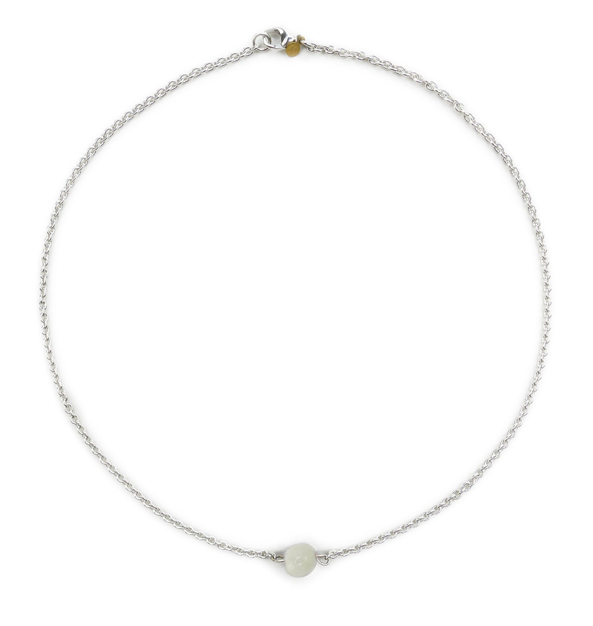 Kette aus Silber mit einer Tagua Perle in blau, lila oder weiss, die mittig an der Kette angebracht ist. Gesamtlänge ca. 45 cm. Hergestellt in Deutschland.